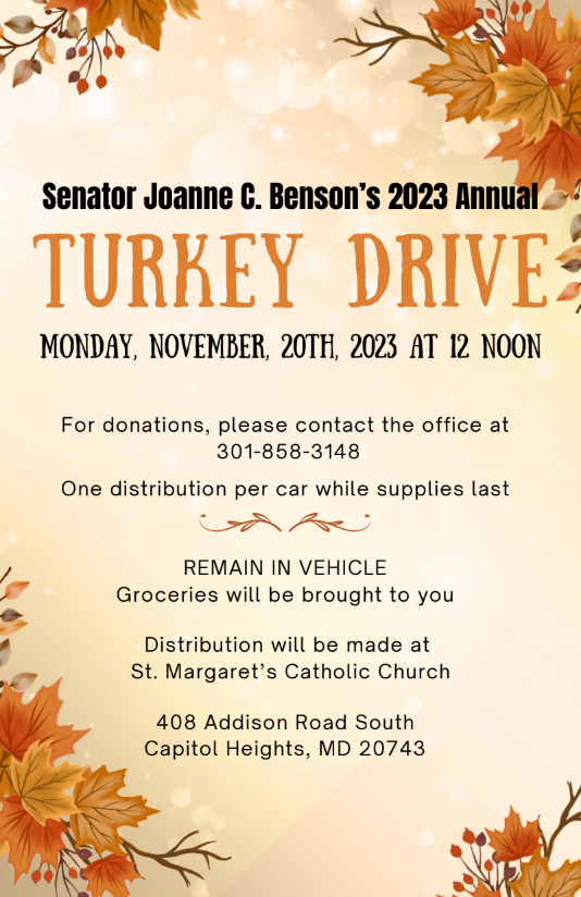 There will be a Thanksgiving basket distribution at Gethsemane on Monday, November 20th from 1:00 to 3:00 pm. The baskets will be distributed on a first come first serve basis.  For more information you can contact Karen Coates on 301-237-7116.
